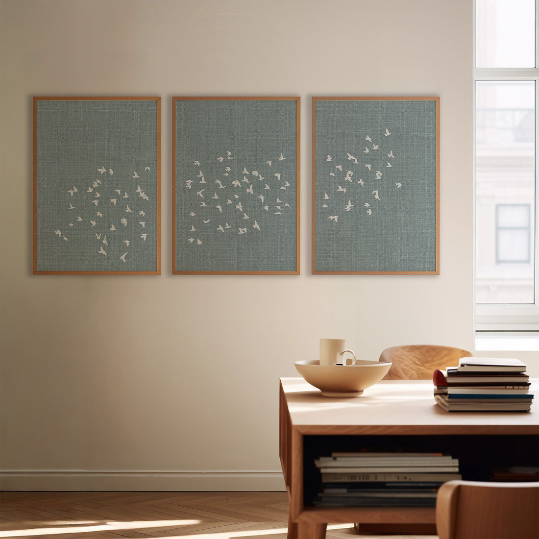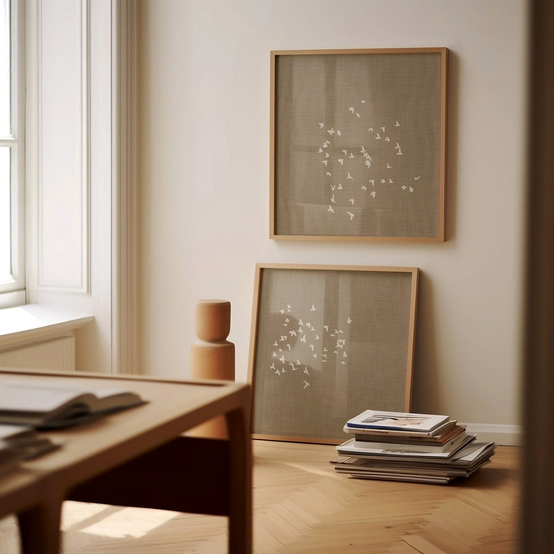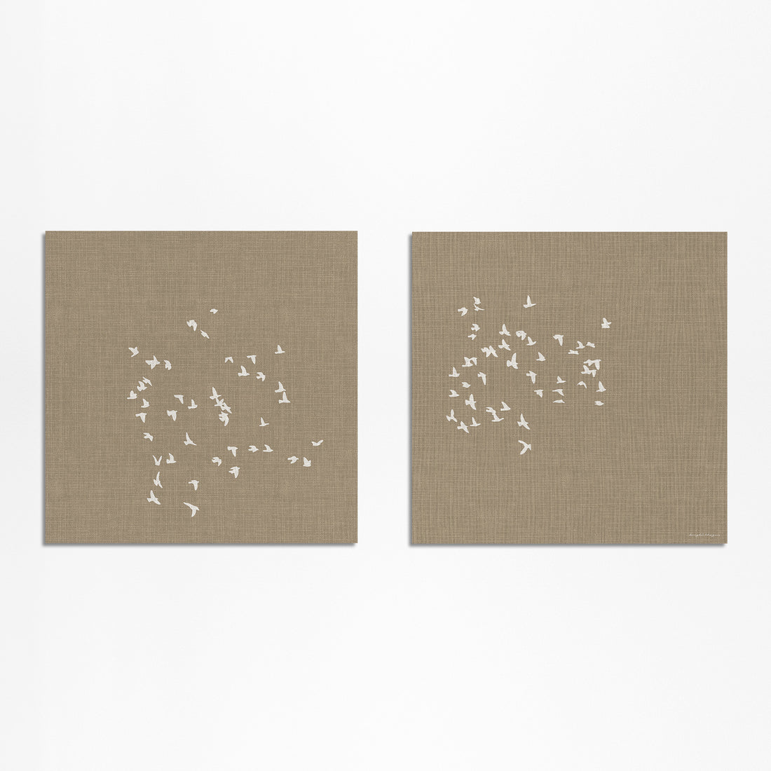 Vrijheid in de Lucht: Zwerm Vogels Tweeluik Linnen Look Poster VierkantVrijheid in de Lucht: Zwerm Vogels Tweeluik Linnen Look Poster Vierkant- Reguliere prijs