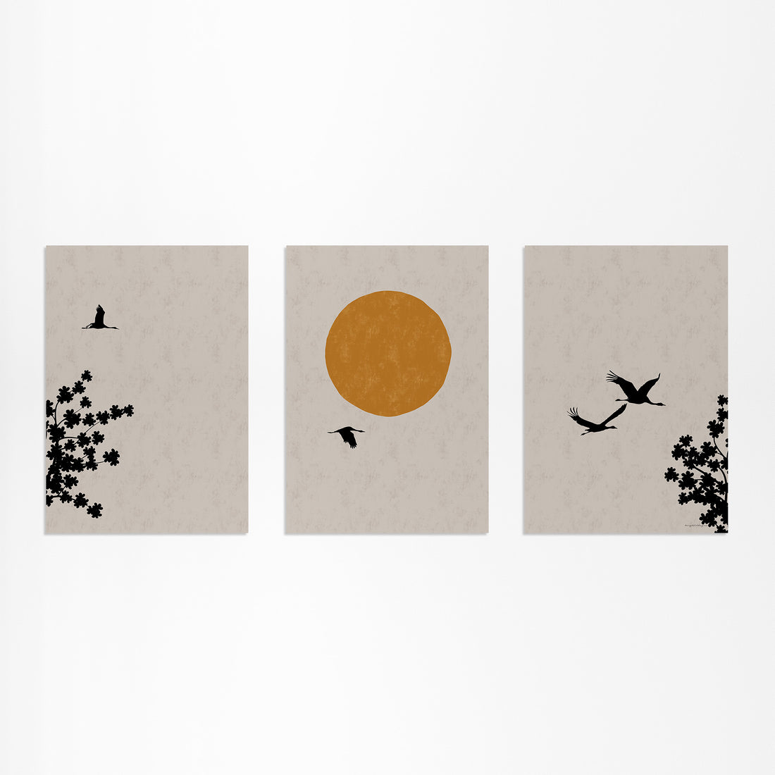 Japanse Lente: Kraanvogels en Bloesemboom Drieluik PosterJapanse Lente: Kraanvogels en Bloesemboom Drieluik Poster- Reguliere prijs
