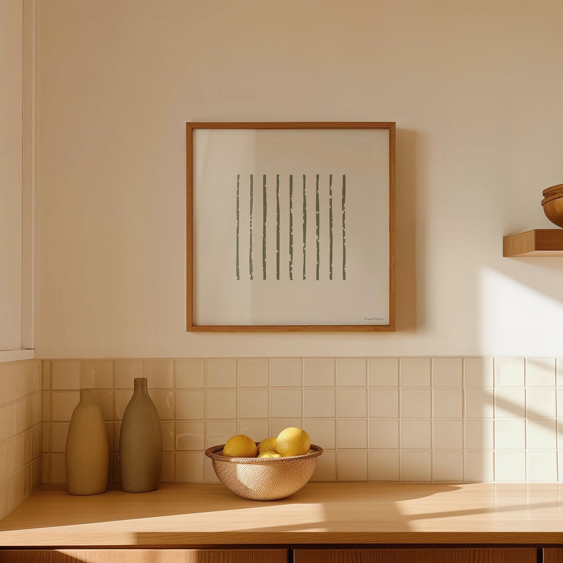 Een Moment van Rust: Wabi-Sabi Verticale Lijnen PosterEen Moment van Rust: Wabi-Sabi Verticale Lijnen Poster- Reguliere prijs