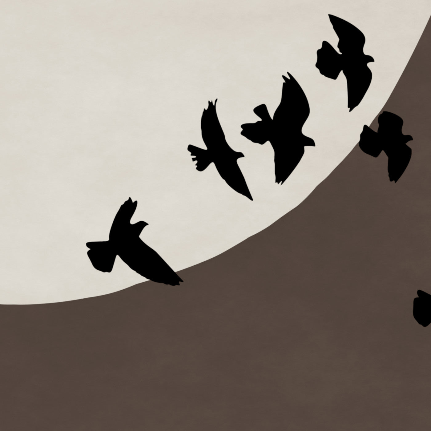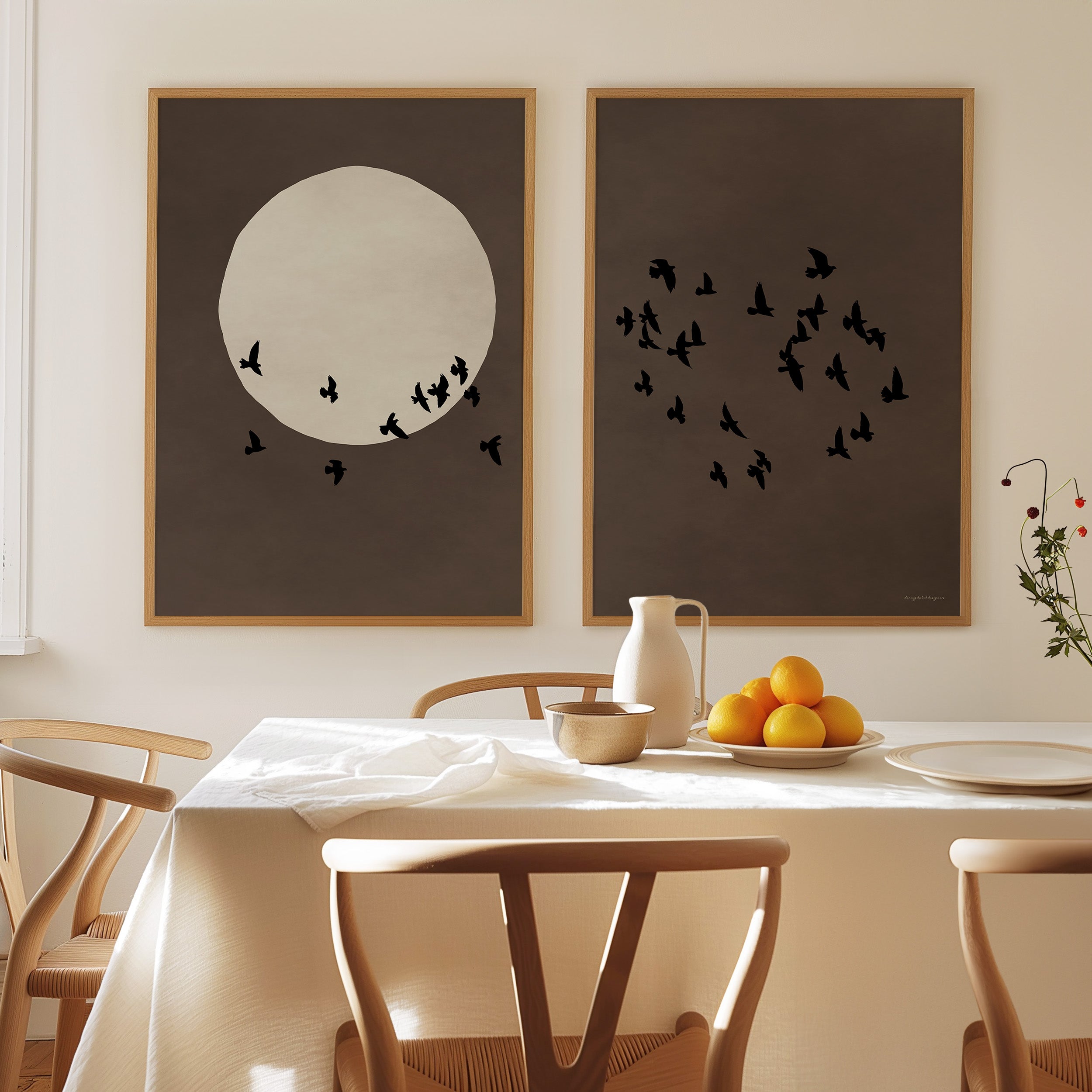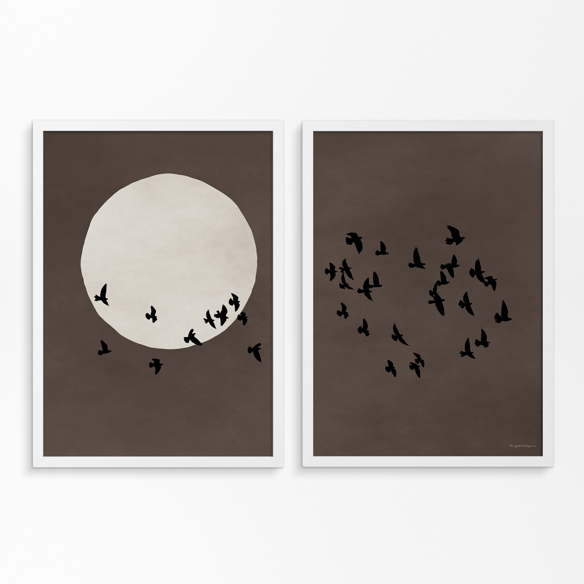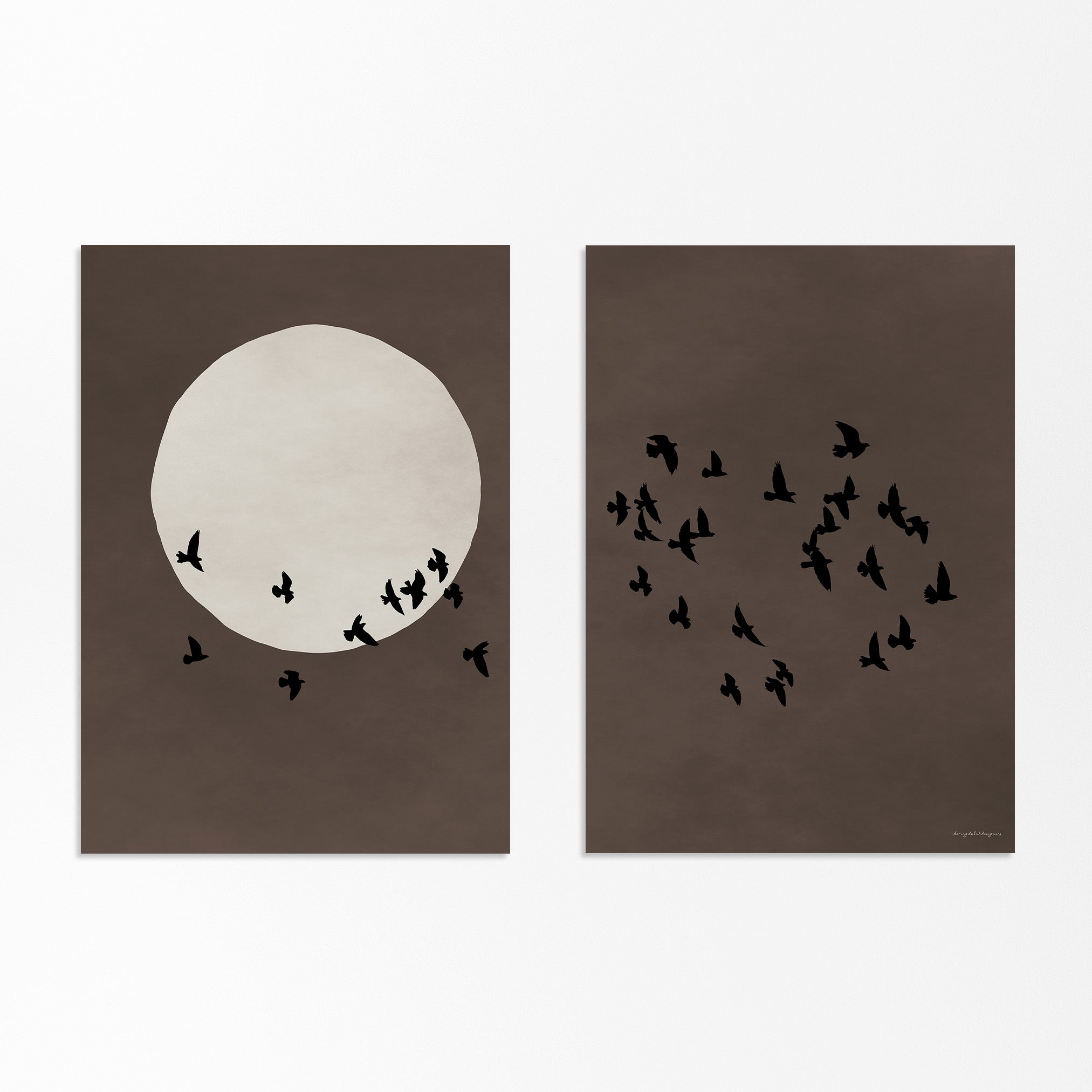 Glücksmoment: Vogelschwarm und Mond Duo-Poster