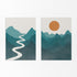 Als je de bergen en rivieren als je tweede thuis beschouwt, dan is deze tweeluik poster iets voor jou! Deze set van twee posters neemt je mee op een visuele reis door de natuur, waar de zon boven de ruige bergtoppen straalt en de rivier kalm door het landschap slingert.