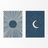 Laat de Zon en Maan Tweeluik Poster je herinneren aan de schoonheid van de natuur en de magie van de nacht. Geef jouw boho-interieur een boost of hang ze op in de kinderkamer of babykamer en creëer een inspirerende omgeving waar je kleintjes kunnen dromen van verre sterrenstelsels en zonnige avonturen.